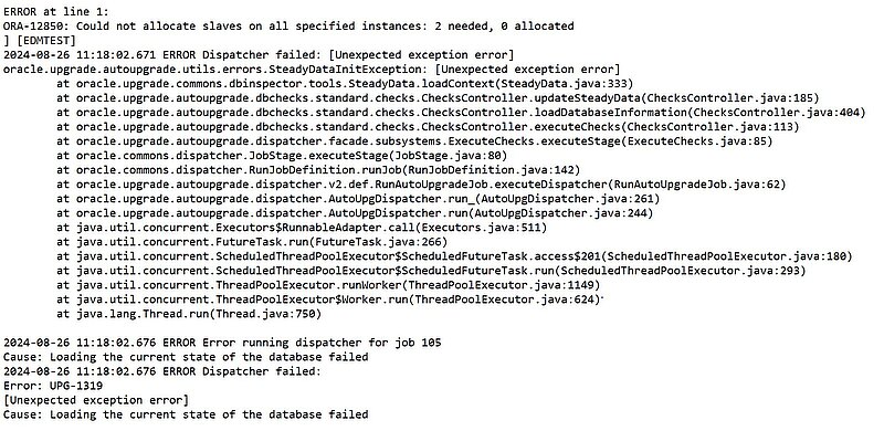 Das Upgrade von 19.22 auf 19.23 mittels einer älteren Version von Autoupgrade war dann auch ohne ein Problem möglich. Der Versuch mittels des aktuellen Autoupgrades 24.5.240701 von 19.23 auf 19.24 zu patchen, endete beim Autoupgrade-Analyze-Schritt in folgender Fehlermeldung (siehe rechts Abbildung 1: Fehlermeldung – zum Vergrößern bitte anklicken).