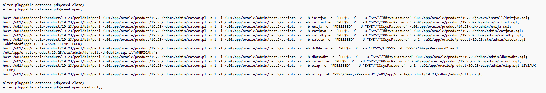 Es wurde eine CDB-Datenbank mit Oracle 19.22 ohne Optionen angelegt (DBCA im Silent Mode). Beim Prüfen der Voraussetzungen für das Plugin einer PDB wurde dann festgestellt, dass die PDB noch zusätzliche Optionen benötigt. Diese wurden in der CDB – wieder mit dem DBCA im Silent Mode – hinzugeführt und das Plugin der PDB war erfolgreich.